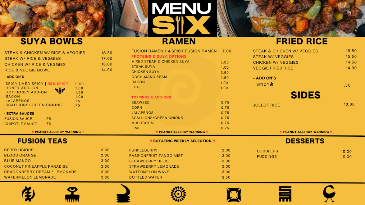 At Menu Six Fusion, you’re in for a unique dining experience that brings together the best of various culinary traditions. Located at 621 N Hampton Rd, DeSoto, TX, this vibrant spot offers a creative fusion of flavors that’s sure to excite your taste buds. Whether you're in the mood for something savory or a little sweet, their menu offers a wide variety of dishes that cater to every craving. From fresh appetizers to indulgent entrees, there's something for everyone to enjoy. The bold combinations of ingredients reflect the restaurant’s passion for creativity, making each dish feel like a celebration of flavors. Perfect for those who love to try new things or for anyone seeking a modern twist on their favorite classics, the Menu Six Fusion Menu promises an unforgettable meal.
